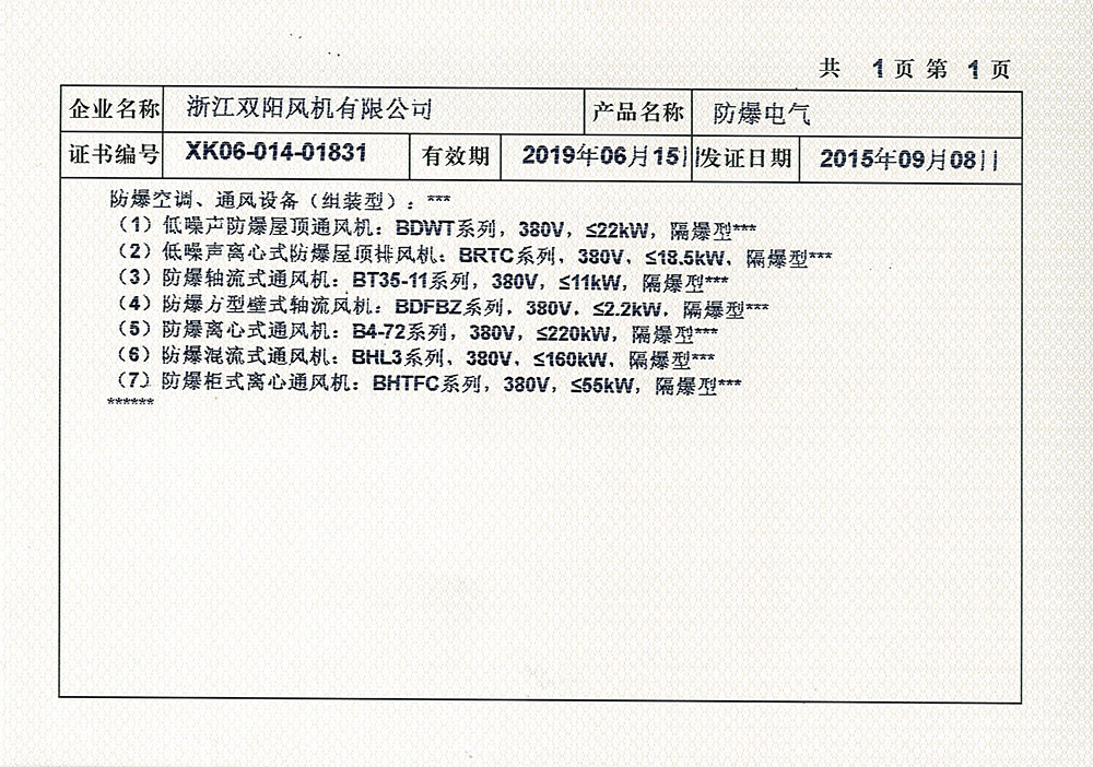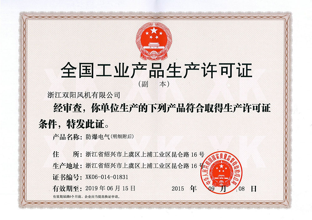 Production License for Explosion-proof electrical Products